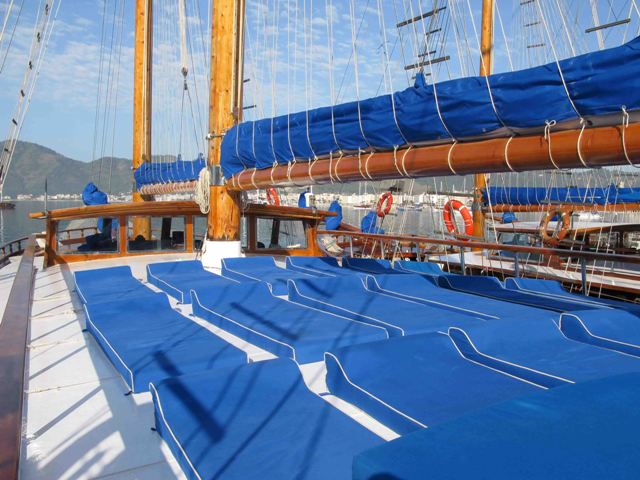 Bahriyeli A Gulet is a 38.00 m. meters wooden crewed yacht which launched in 2002. She designed for luxury private crewed yacht charters with modern and large cabins, saloon and deck. , 2 double cabins, 8 twin cabin with 2 single beds is offering spacious accommodation up to 20 people. In each cabin, including seperately placed shower unit, it has its own private shower and toilet. All the yacht, including the cabins are air-conditioned.