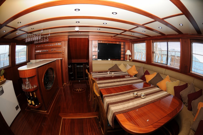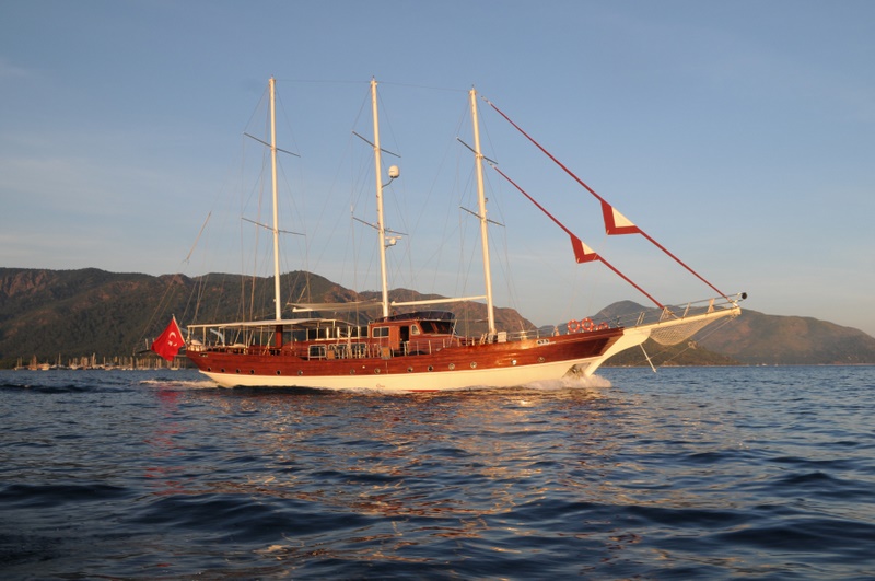 Berrak Su Gulet is a 34.00 m. meters wooden crewed yacht which launched in 2008 and she has been completely refitted in 2010. She designed for luxury private crewed yacht charters with modern and large cabins, saloon and deck. 2 master cabin with french bed, 4 double cabins is offering spacious accommodation up to 12 people. In each cabin, including seperately placed shower unit, it has its own private shower and toilet. All the yacht, including the cabins are air-conditioned.