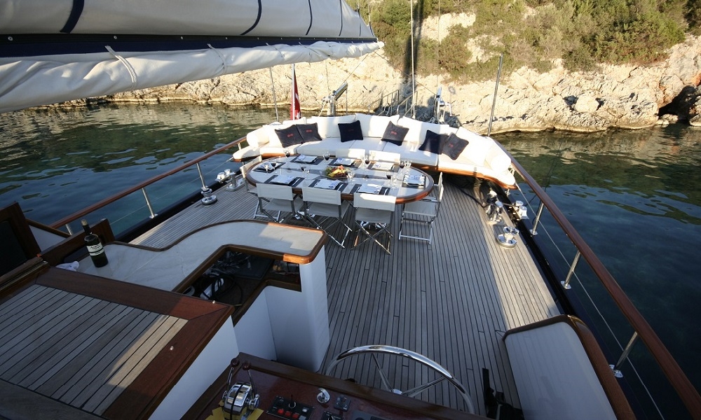 Our boat is remarkable with an elegance and comfortable living areas, and can provide the blue cruise service for your group up to 8 people. Our gulet is classed in the deluxe category and has a length of 24 meters. Our boat was launched in year 2010, and offers service with our experienced crew of 4 people. You can also sail if weather conditions are appropriate with the sail equipment and can leave with unforgettable memories of your tour.