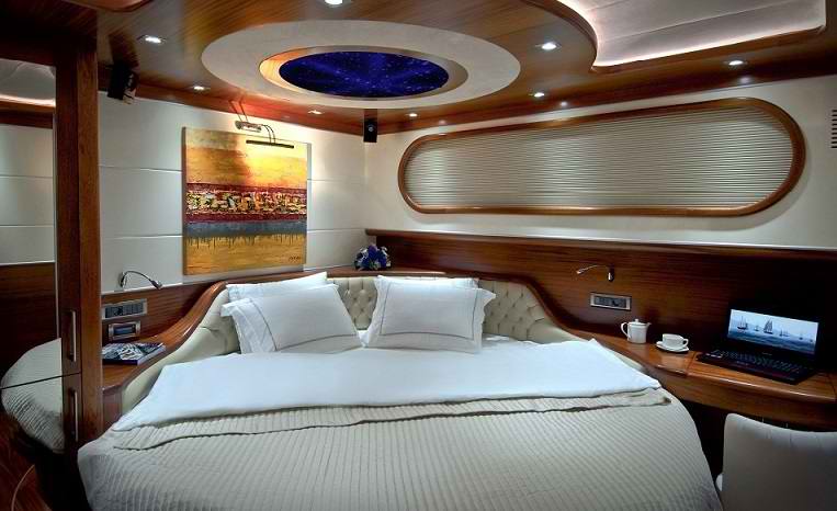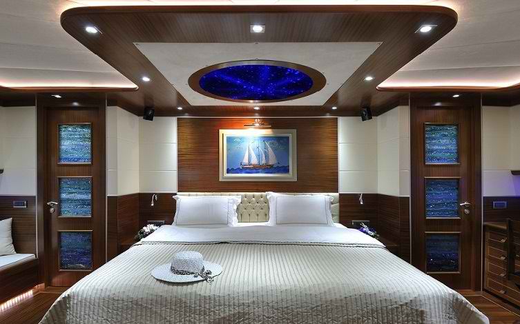 Dolce Mare Gulet is a 36.00 m. meters wooden crewed yacht which launched in 2011. She designed for luxury private crewed yacht charters with modern and large cabins, saloon and deck. 2 master cabin with french bed, 2 double cabins, 2 triple cabin with 1 double + 1 single bed is offering spacious accommodation up to 12 people. In each cabin, including seperately placed shower unit, it has its own private shower and toilet. All the yacht, including the cabins are air-conditioned.