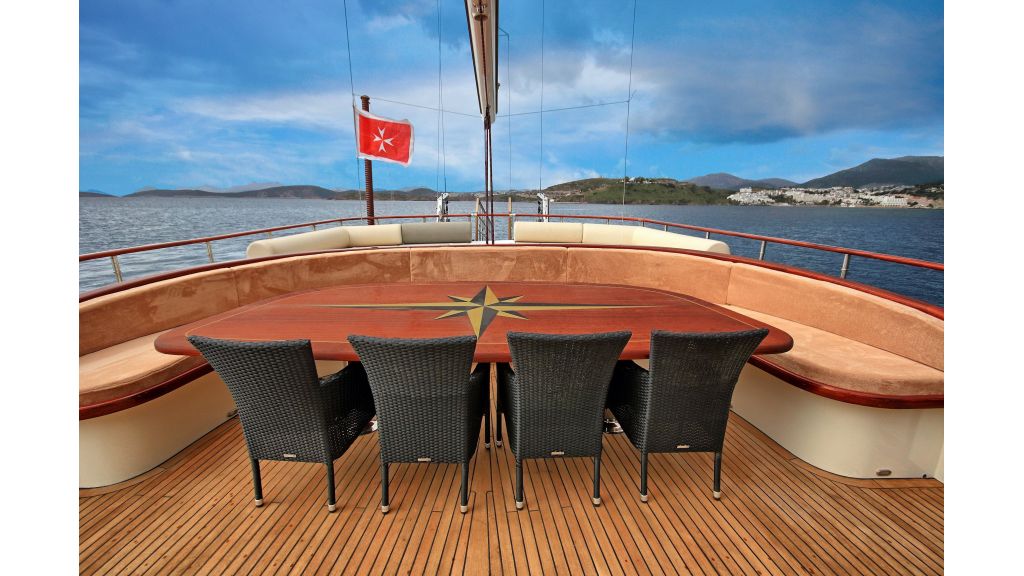 The production of this 39 meter long yacht was refurbished in 2016 for weekly rental service in 2017. In our 2017 season we will serve blue cruise on the Iniona Sea, Athens, Corfu, Montenegro, will be at your service for our valued guests who love blue tours.  Manufacturers of this yacht have added modern and classic wooden structure with stained glass accessories and new generation ceramics. The outer structure of the yacht is painted, and the interior is made of wood. There are seating areas and sunbathing cushions on the front that you can spend good time looking at the views. The main dining table is at the back and all of the cabins have TV, 24 hours air conditioning and each cabin has a shower / WC. We have a crew of 5 people, including 1 captain, 1 cook, 2 seamen and 1 hostess, which we believe will increase the quality of the service offered so that the staff gives comfortable living areas. Our staff with have the ability to provide ultra luxurious service, showing our guests maximum sensitivity to privacy.