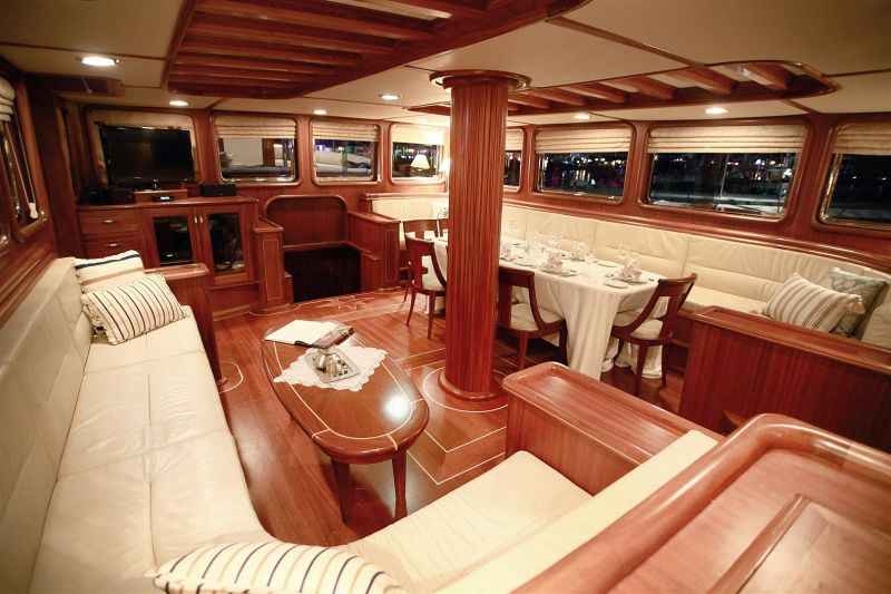 Nurten A Gulet is a 31.00 m. meters wooden crewed yacht which launched in 2002 and she has been completely refitted in 2012. She designed for luxury private crewed yacht charters with modern and large cabins, saloon and deck. 2 master cabin with french bed, 2 double cabins, 2 twin cabin with 2 single beds is offering spacious accommodation up to 12 people. In each cabin, including seperately placed shower unit, it has its own private shower and toilet. All the yacht, including the cabins are air-conditioned.