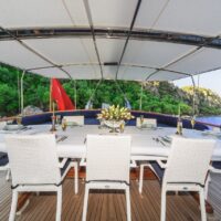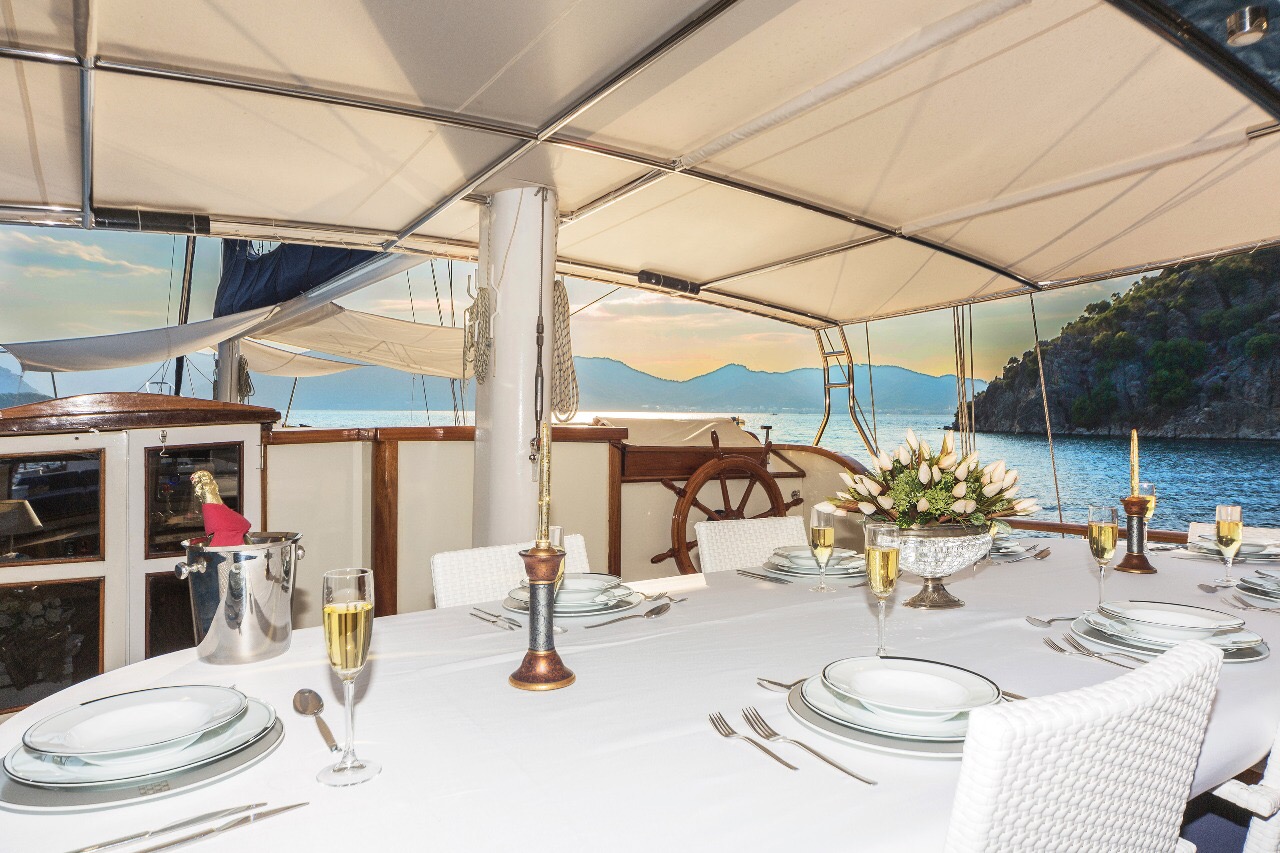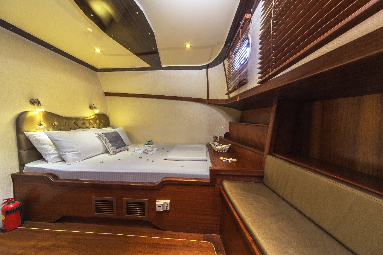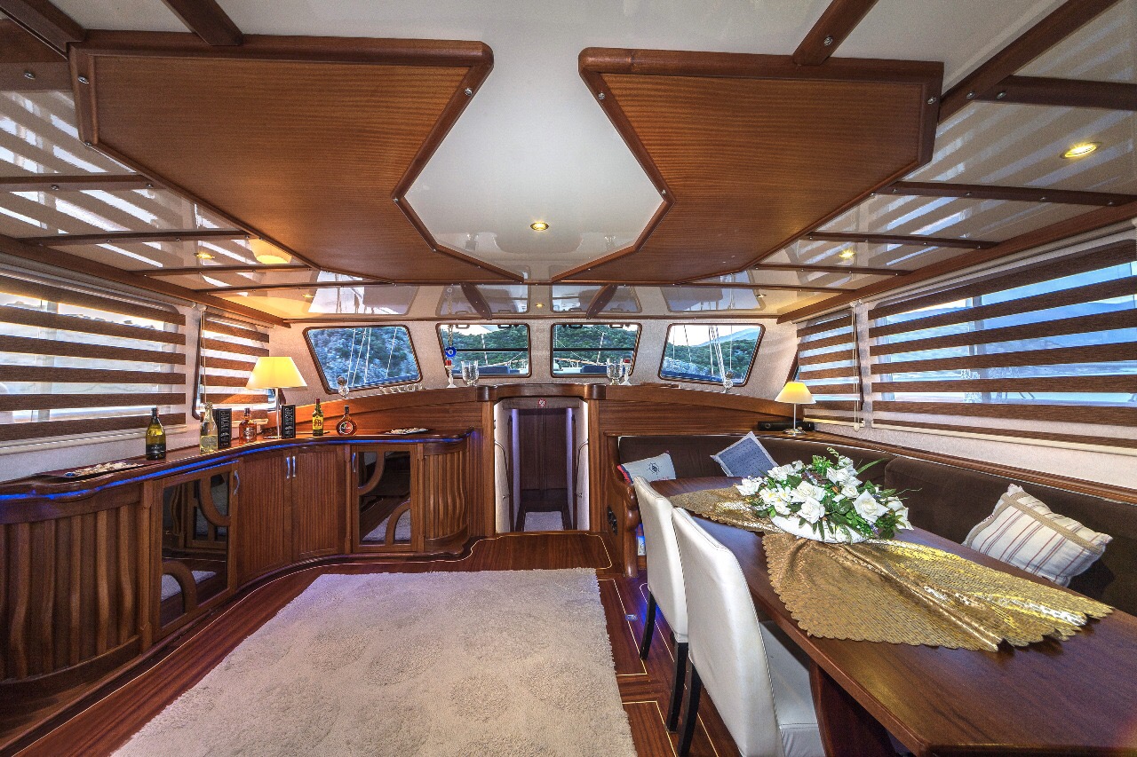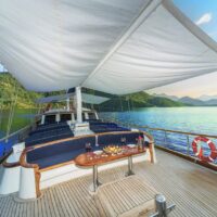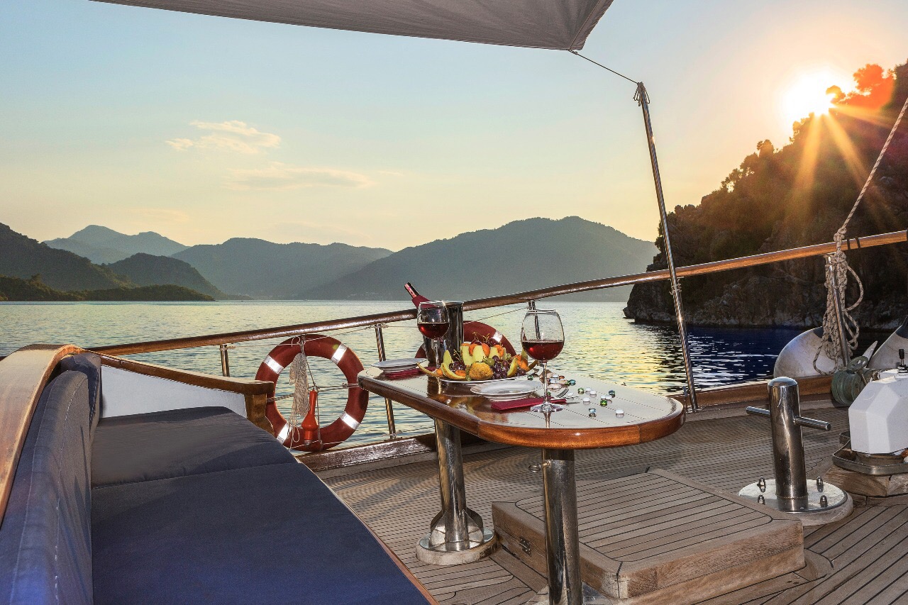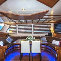Gulet Remzi Yilmaz, based Marmaris, Turkey, heart of the Blue cruise route and convenient for Rhodes, Greece and the South Dodecanes Isles. Launched in 2012, this 27 metre ketch design yacht has modern and chic interior design. She has 6 cabins that accommodate up to 12 guests, 1 master 4 double and 1 twin, all are air-conditioned and have en-suite bathrooms. She is spacious and comfortable with ample dining and relaxation areas. TV, DVD, music system, internet are some of her many features. There are 4 professional crew to take care of you and a service boat with 40HP outboard, plus a selection of watersports. For groups of up to 12 guests, Remzi Yilmaz is an ideal choice to private charter.