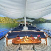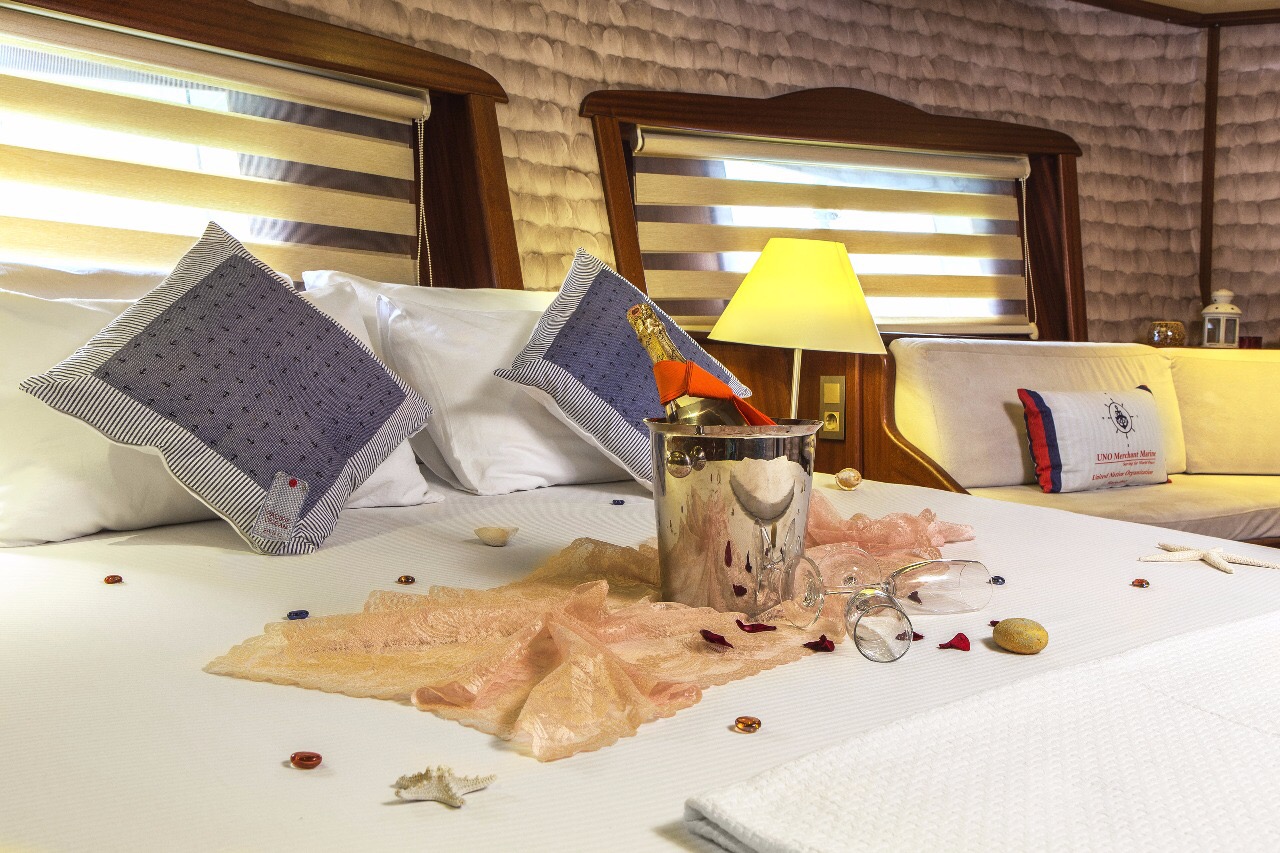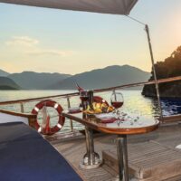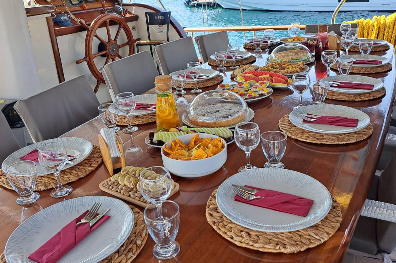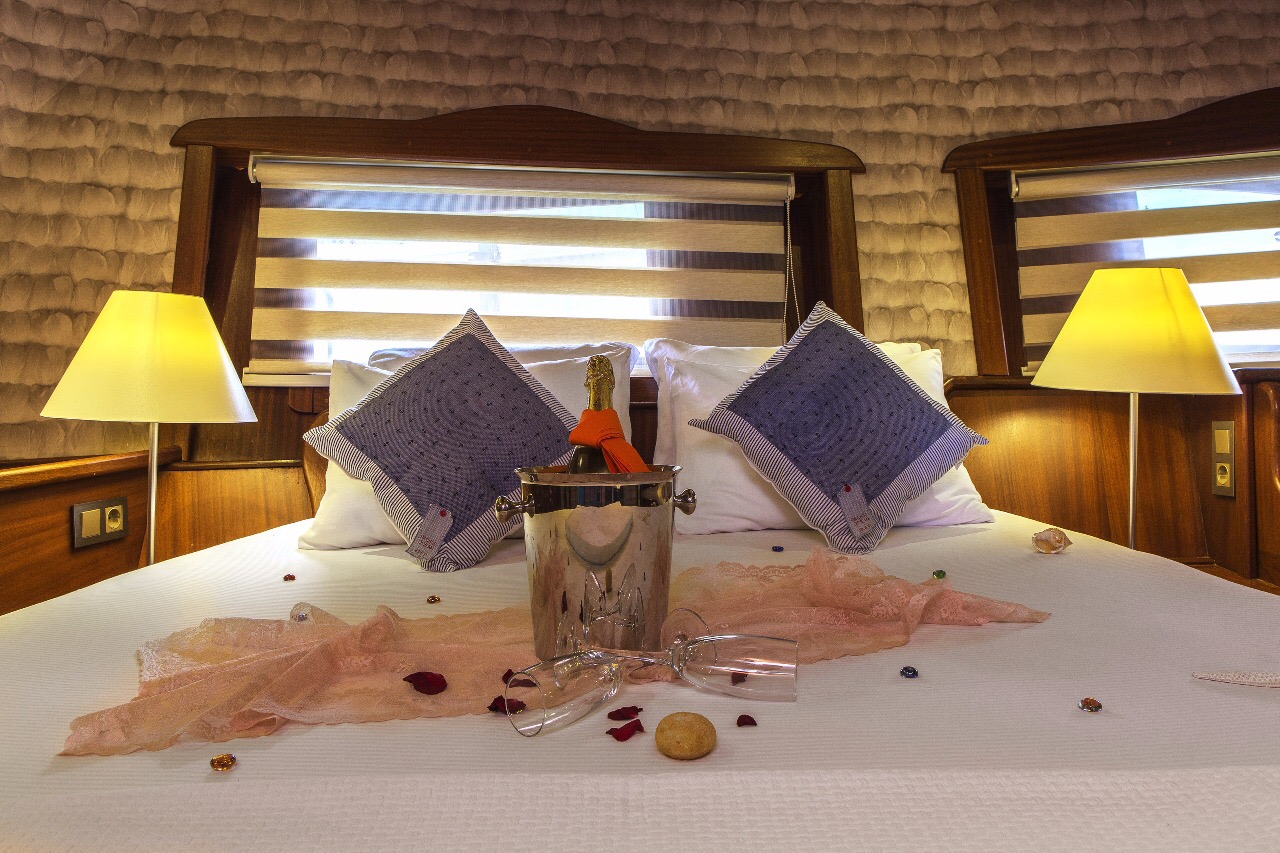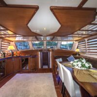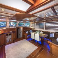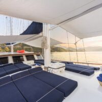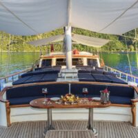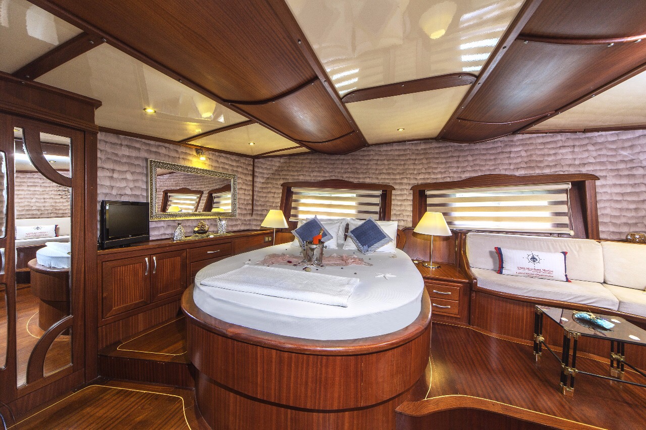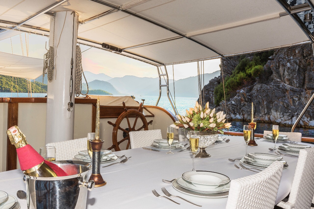 Gulet Remzi Yilmaz, based Marmaris, Turkey, heart of the Blue cruise route and convenient for Rhodes, Greece and the South Dodecanes Isles. Launched in 2012, this 27 metre ketch design yacht has modern and chic interior design. She has 6 cabins that accommodate up to 12 guests, 1 master 4 double and 1 twin, all are air-conditioned and have en-suite bathrooms. She is spacious and comfortable with ample dining and relaxation areas. TV, DVD, music system, internet are some of her many features. There are 4 professional crew to take care of you and a service boat with 40HP outboard, plus a selection of watersports. For groups of up to 12 guests, Remzi Yilmaz is an ideal choice to private charter.