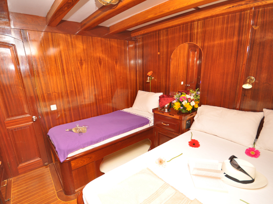 A classic wooden Turkish Gulet, Sun World 9 offers the best of gulet charters out of Bodrum for large groups or combined families. The beautifully maintained sailing yacht has equal sized double and twin cabins, and plentiful space for relaxing. On deck a wide cushioned couch and large table under the awning are the focal points for excellent meals presented by the crew.