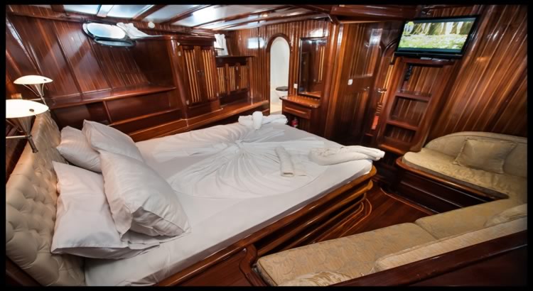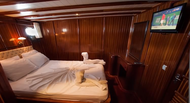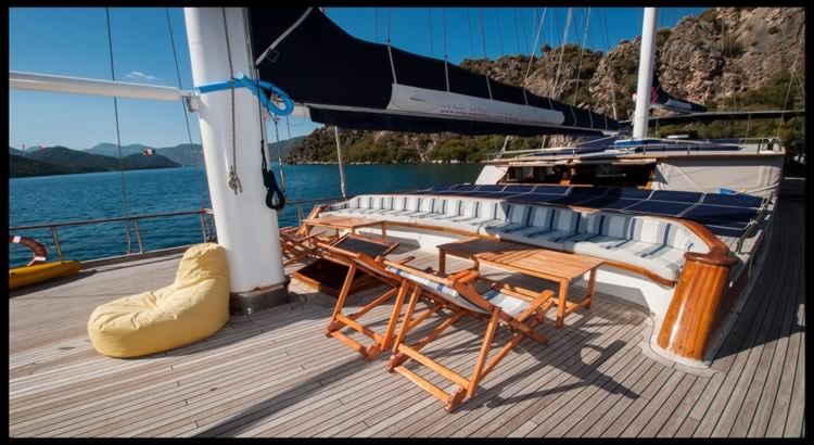 Ugur Gulet is a 31.00 m. meters wooden crewed yacht which launched in 2005. She designed for luxury private crewed yacht charters with modern and large cabins, saloon and deck. , 7 double cabins is offering spacious accommodation up to 14 people. In each cabin, including seperately placed shower unit, it has its own private shower and toilet. All the yacht, including the cabins are air-conditioned.